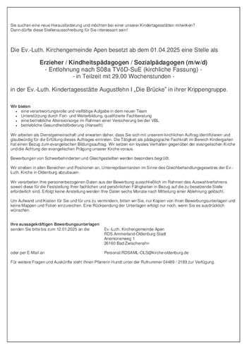 Der Ev. - luth. Kindergarten "Die Brücke" ist in kirchlicher Trägerschaft in der Gemeinde Apen und befindet sich in Augustfehn I